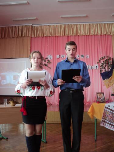2-й ведучий: 81 рік тому мільйони синів і доньок України, мільйони невинних людей, мільйони наших рідних і близьких були без жалю винищені Голодомором. Тоталітарний комуністичний режим свідомо спланував і здійснив терор нашого народу голодом.